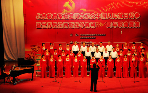 6月26日上午,beat365老教师合唱团首次组队参加了由北京市委教育工委举办的北京市教育系统老同志纪念抗日战争胜利70周年歌曲汇演活动。