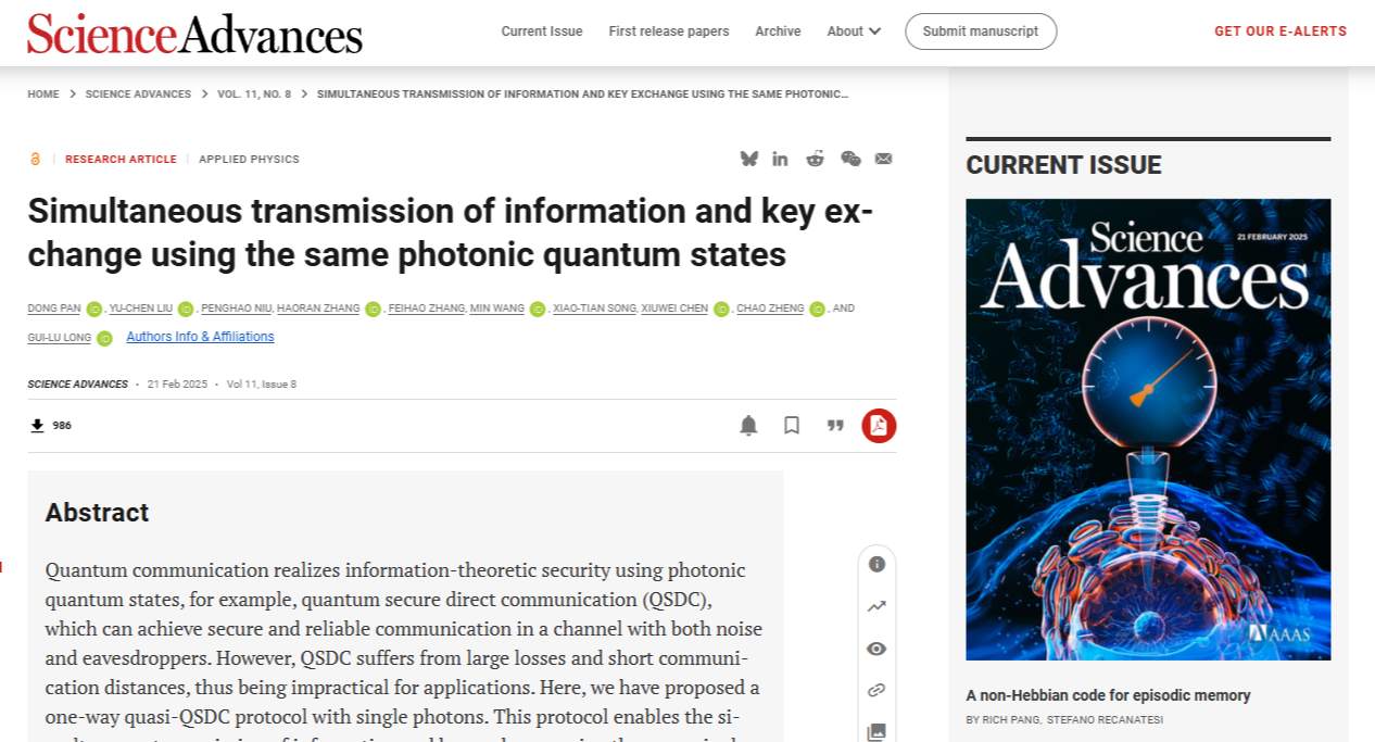 近日,beat365储能学院郑超教授领衔的储能量子直接通信与计算团队作为参研单位,与北京量子信息科学研究院和清华大学相关团队合作,提出单向量子直接通信理论,成功研制出实用化系统,创造了在104.8公里标准光纤通信实验测试中连续168小时、速率为2.38kbps的稳定传输世界纪录。相关成果于2025年2月21日在国际知名学术期刊《ScienceAdvances》(《科学进展》)上发表,这标志着量子直接通信从理论构想成功迈向实际应用阶段。单向量...