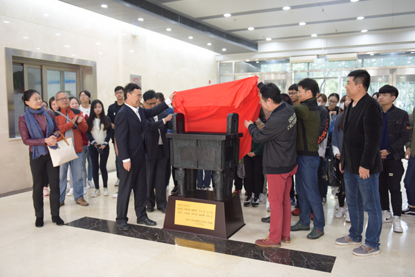 10月13日下午,陕西校友向学校捐赠司母戊方鼎揭幕仪式在博远楼一层大厅举行。