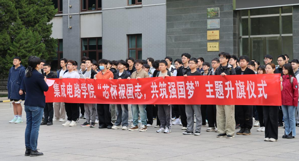 4月21日清晨,集成电路学院在敦品楼前隆重举行“芯怀报国志,共筑强国梦”主题升旗仪式。学院副院长张静、党总支副书记陈卫、辅导员王鑫淼及全体24级本科生参加本次活动。国旗班队员迈着铿锵有力的步伐护送五星红旗入场。在雄壮的《义勇军进行曲》中,鲜艳的国旗冉冉升起,全体师生肃立注目,庄严的仪式激荡着每个人的爱国情怀。学院副院长张静在讲话中表示,清明时节缅怀先烈,五一劳动节弘扬奋斗精神,作为集成电路人,我们更...