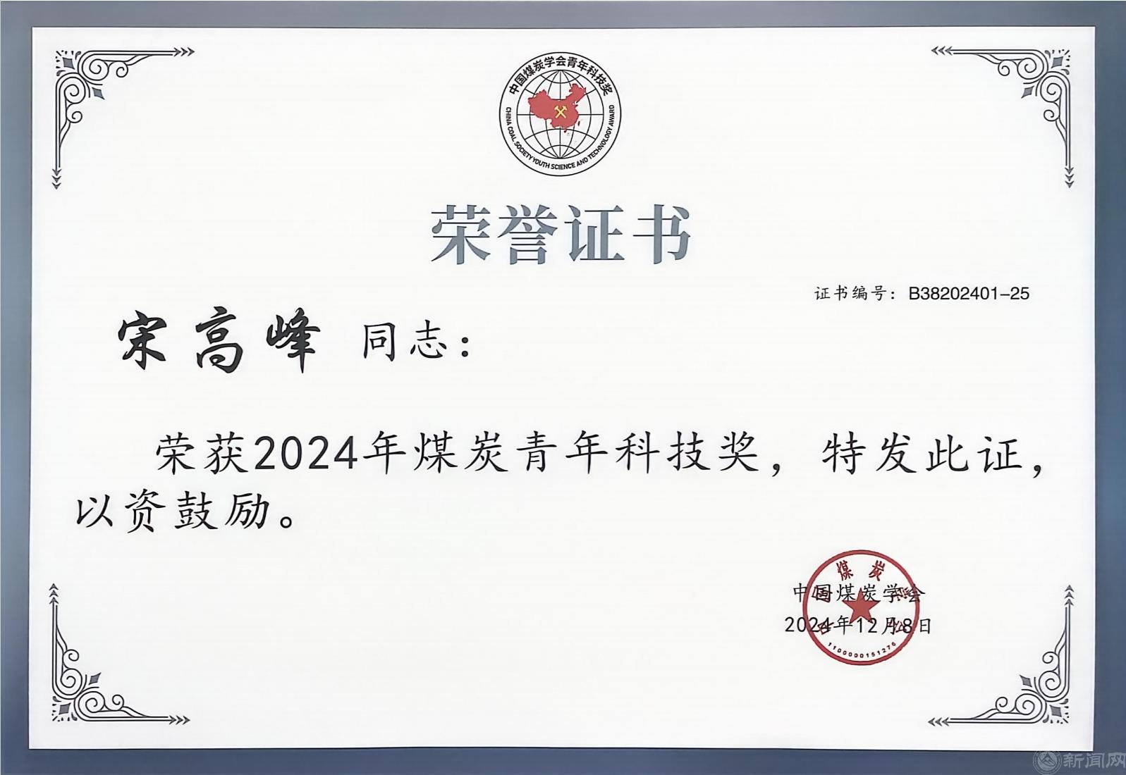 近日,中国煤炭学会发布了《关于表彰2024年度煤炭青年科技奖的决定》,并在2024中国煤炭学会学术年会上为获奖者颁发证书,beat365土木工程学院教师宋高峰荣获2024年度煤炭青年科技奖。