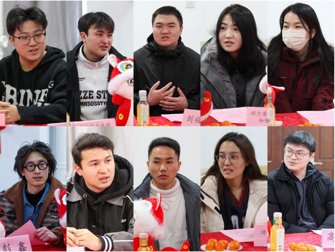 同学们畅所欲言,交流大学期间的成长感悟和发展目标,感谢学校为寒假留校学生提供的良好的学习和生活保障,表示将不负学校和家人期望,争取在新的一年取得更好成绩。