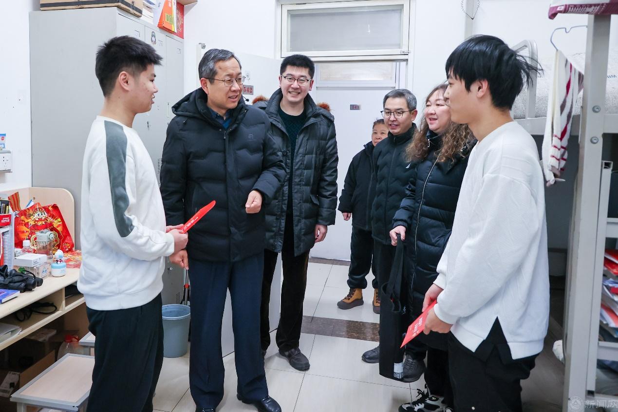 1月28日除夕当天,党委副书记史贞军来到馨斋公寓,慰问留校学生,了解学习生活和实习求职情况,送去春节祝福和红包,叮嘱同学们注意出行安全,度过一个吉祥、平安的春节。