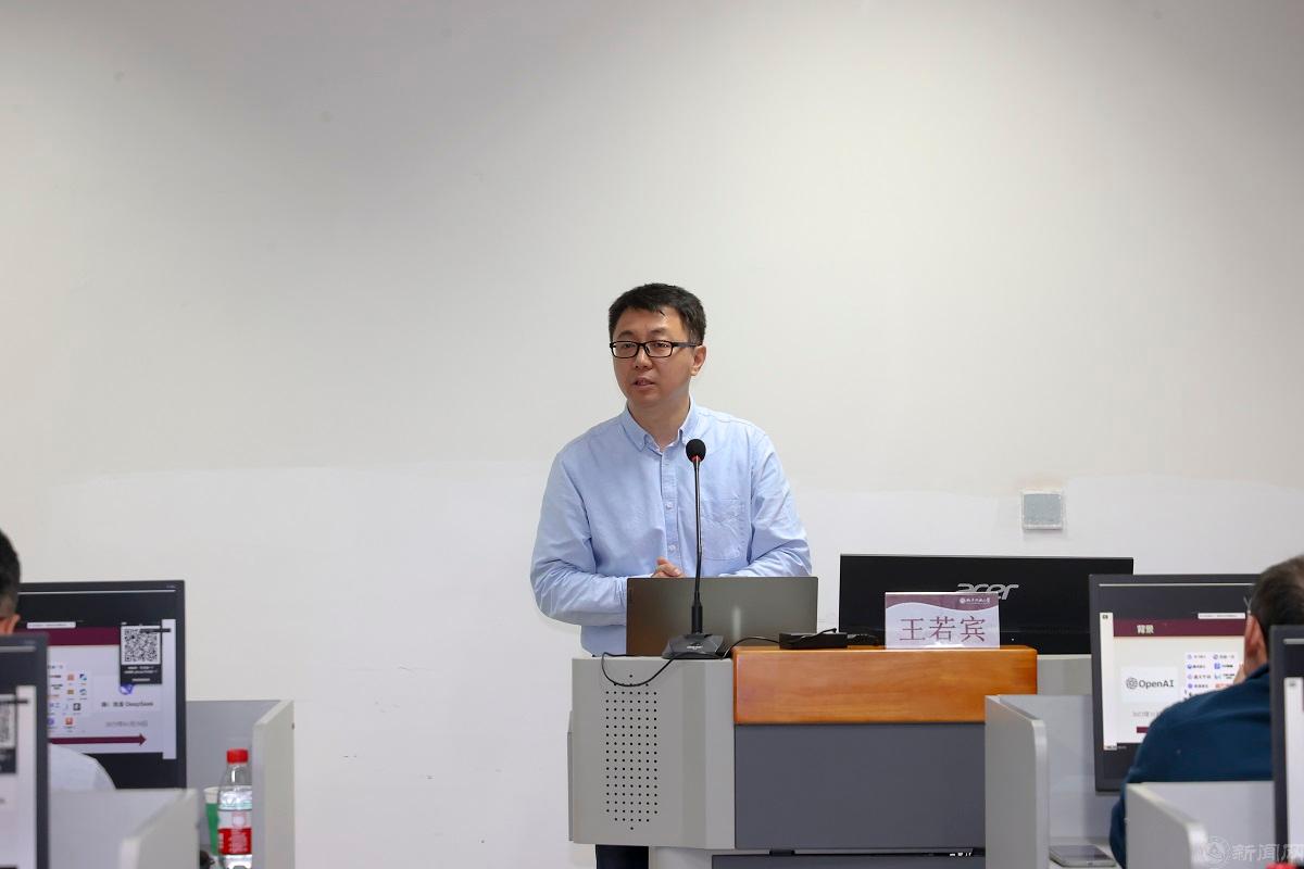 首期培训由信息学院王若宾教授进行“Deepseek应用能力专题培训”,从Deepseek赋能探讨等五大模块系统讲述了人工智能技术在教育场景中的融合应用,解析了Deepseek在教育中的典型应用场景,讲解了运用Deepseek+WPS实现高质效协同办公的具体方法,介绍了提示词设计技巧,并强调了Deepseek使用的风险防范,进行了保密工作提示,通过理论讲解与实操演示相结合的方式,帮助参训教师掌握和提升在教育教学管理等工作中运用人工智能工具的能力。