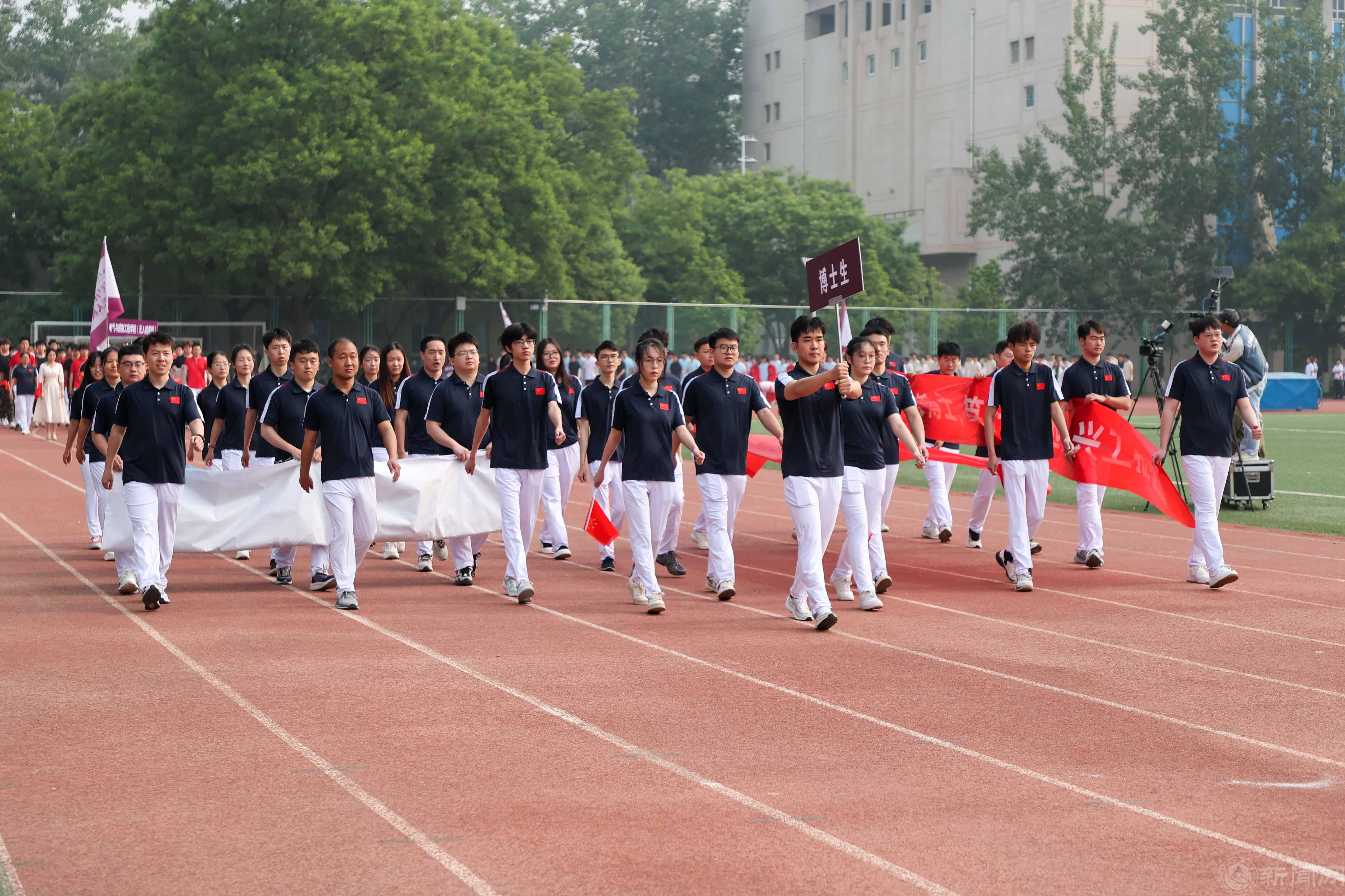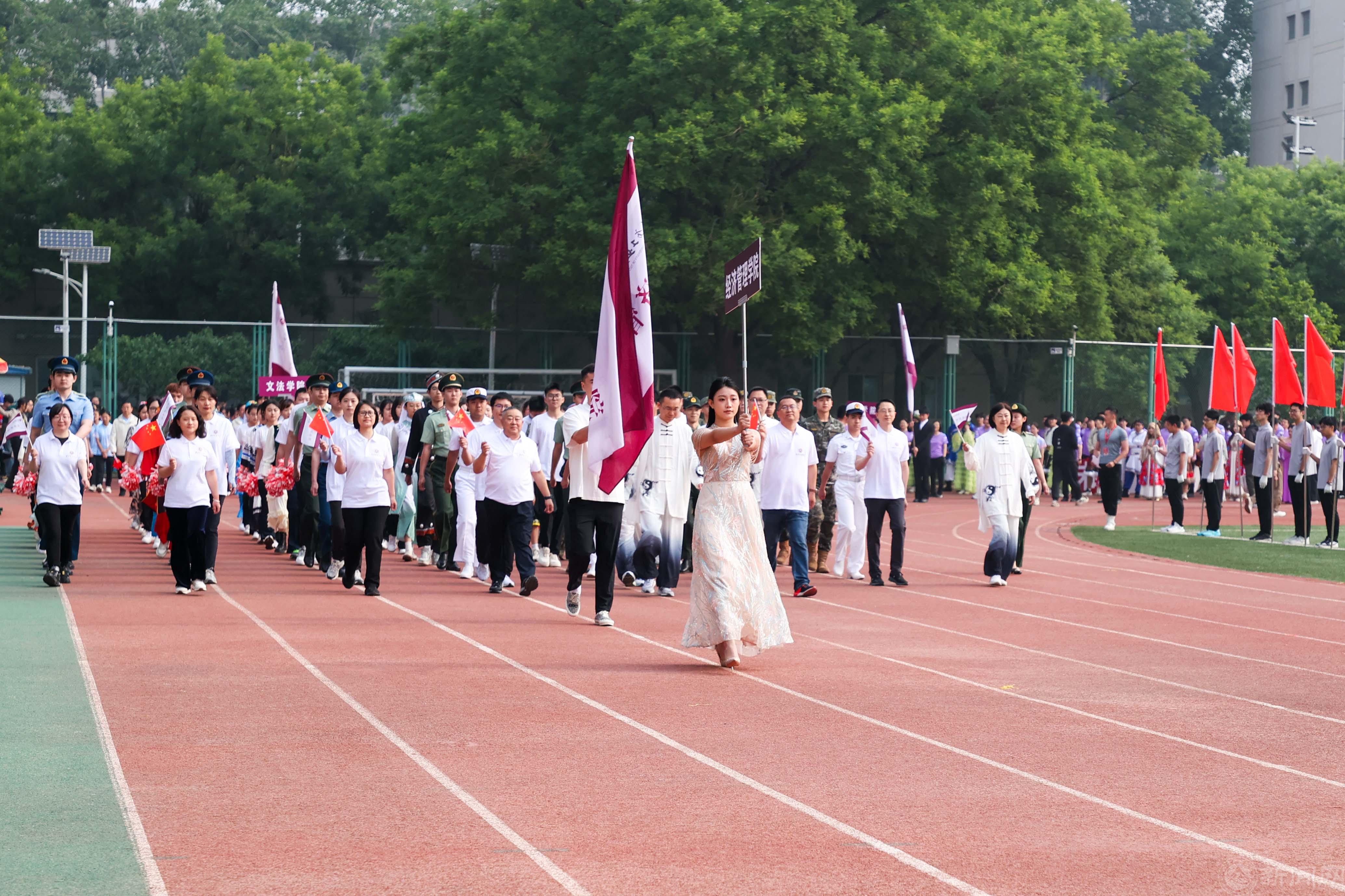 紧随教职工方队的是博士生方队和各二级学院运动员代表方队,各学院班子成员和教师代表走在方队前列,师生迈着整齐的步伐,精神饱满、斗志昂扬,齐声喊出具有本学院特色的响亮口号。