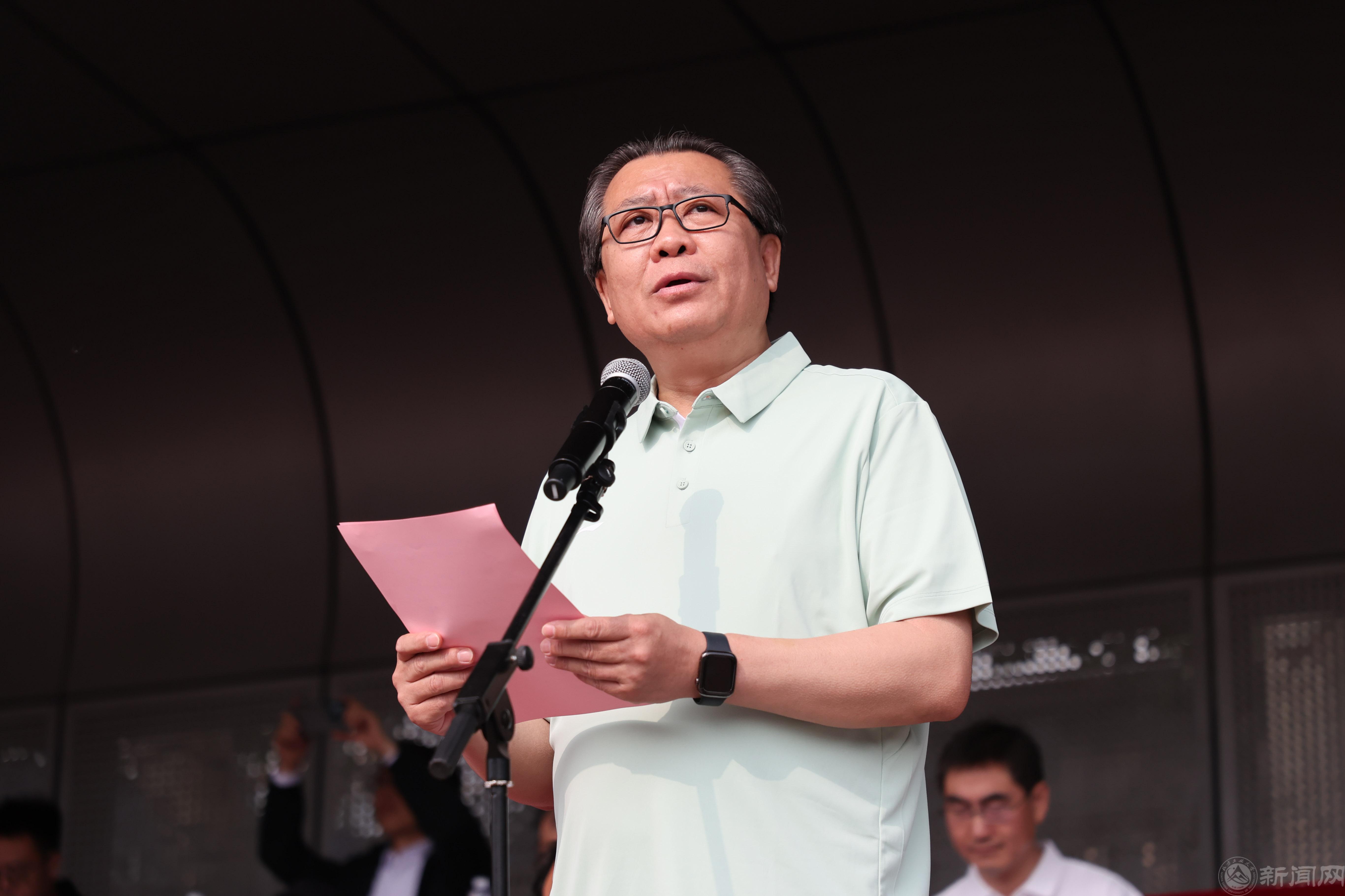 党委副书记、校长张立峰致开幕词。他回顾了师生近年来在国内外各项体育赛事中取得的成就,指出这些成就展现了北方工大人顽强拼搏、永攀高峰的精神风貌,同学们在比赛中不仅提高了体育竞技水平,更锤炼了意志品格,跑出了青春风采。张立峰表示,学校自1946年建校以来,始终与国家和时代同行,从战争烽火年代的“兴工报国”誓言,到新时代“样板建设”的奋力奔跑,都有践行了胸怀国之大者的责任担当。2026年学校将迎来80岁华诞,希望全体师生继承和弘扬体育精神,进一步汇聚学校“四新”发展、“六有”学院的精气神,为强国建设贡献北方工大力量。希望全体运动员赛出风格、赛出水平,在赛场上展现青春活力。