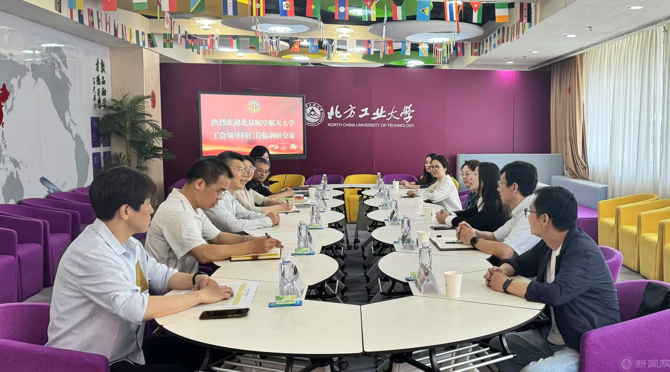 5月16日下午,北京航空航天大学工会常务副主席朱颖等一行6人来beat365调研交流。学校党委副书记、工会主席姜孔桥出席调研交流座谈会。会议由校工会常务副主席黄睿主持。