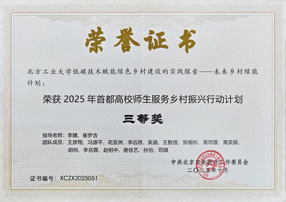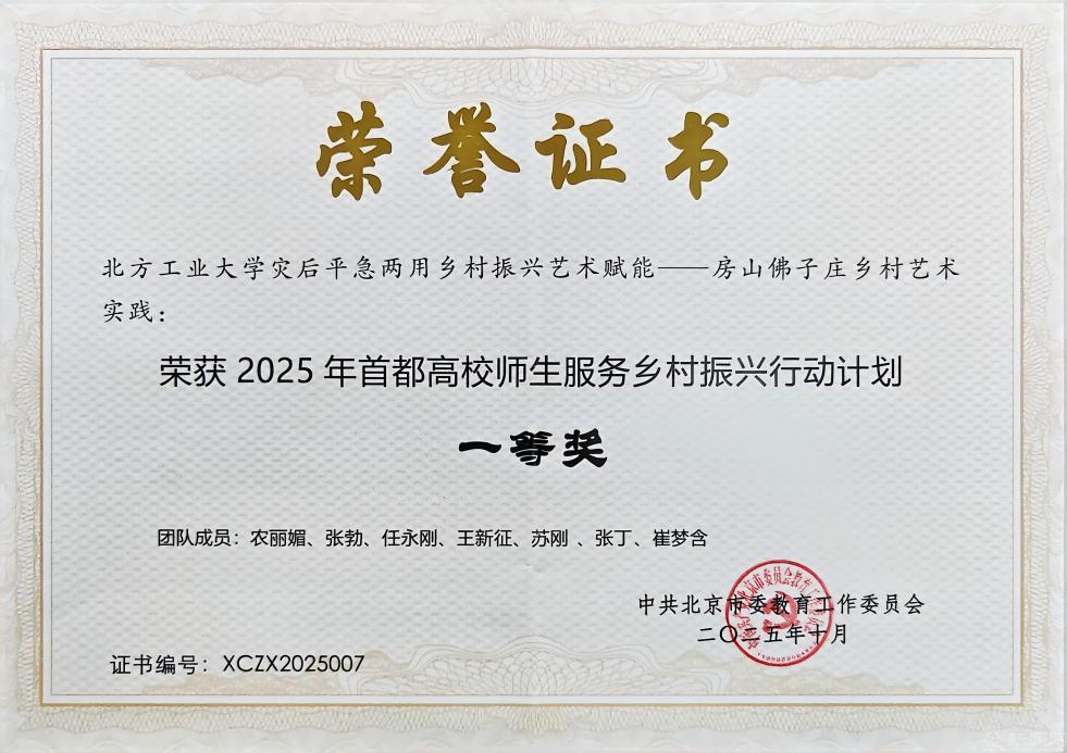 近日,2025年首都高校师生服务乡村振兴行动计划优秀成果评审结果公布,beat365申报的三个项目全部入选,教师团队项目“灾后平急两用乡村振兴艺术赋能——房山佛子庄乡村艺术实践”获评一等奖,学生团队项目“低碳技术赋能绿色乡村建设的实践探索——未来乡村绿能计划”和“‘智能村居·科技生活’——科技赋能乡村振兴行动”分别获评三等奖和优秀奖。