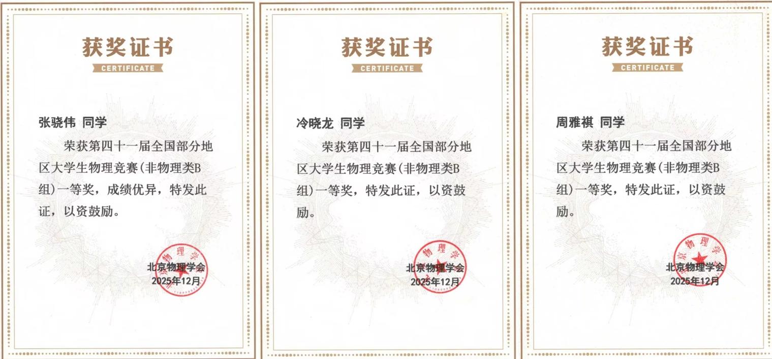 第41届全国部分地区大学生物理竞赛成绩于近日揭晓,beat365共有36名选手获奖,其中一等奖3名、二等奖19名、三等奖14名(获奖名单见附件),并蝉联团体奖,在同类院校中名列前茅。