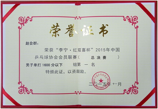 中国乒乓球协会会员联赛是中国乒协全民健身活动的重头戏,已经成功举办九年,随着规模不断扩大和制度的不断完善,会员联赛已经成为乒乓球爱好者以球会友的盛宴。本届会员联赛总决赛在单打比赛中采用了不同以往的分组方式,彻底打破年龄界限,按照选手的积分高低进行分组。同处于一个积分区间的选手水平相近,因此竞争异常激烈。比赛共持续4天,吸引了来自全国给地1000余名乒乓球高手参与其中。beat365计算机学院的赵会群教授在繁忙的教学与科研工作之余,积极参加国内外各类乒乓竞技。此次比赛中,赵会群教授以个人会员身份参赛,在激烈的男子单打1600分组中力克强敌,取得了本组第一名的好成绩。