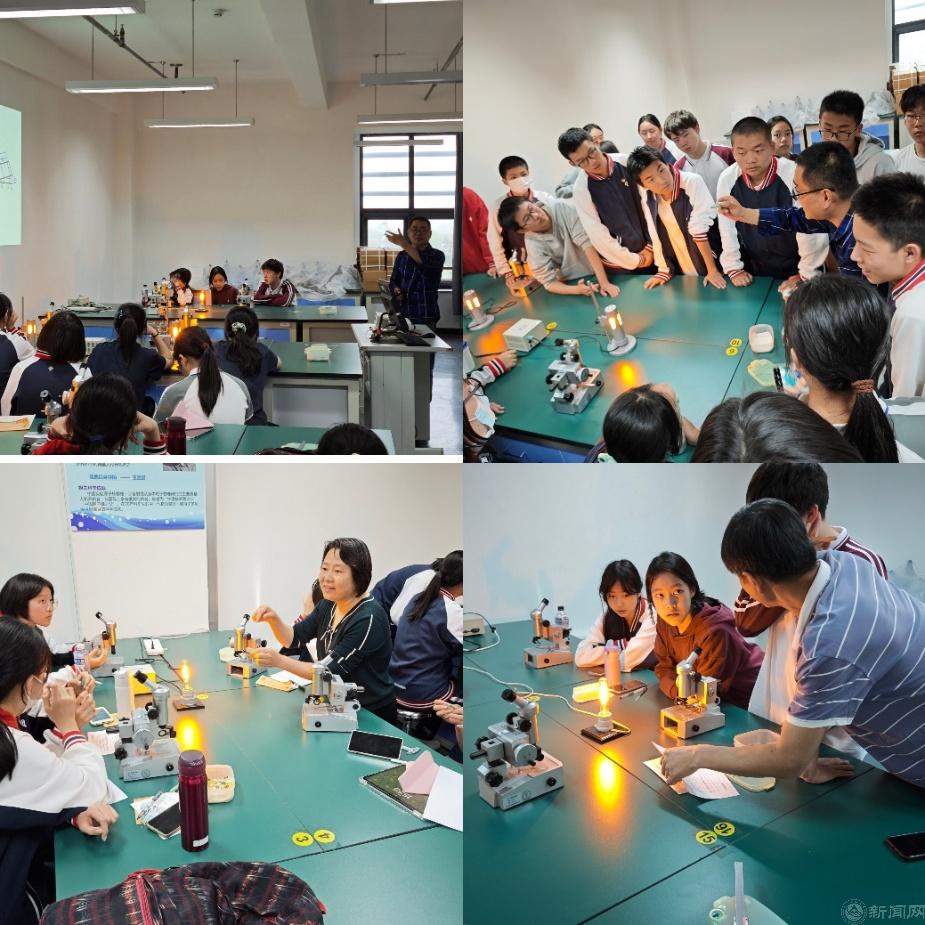 在电物理实验室,老师们为学生讲解头发丝直径测量实验的原理,指导学生亲自动手实践,同学们兴趣高涨,驻足围观,尝试动手实际操作,沉浸式体验了物理的魅力。