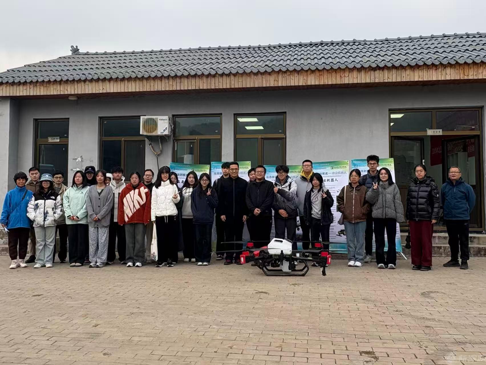在随后的观摩环节中,同学们学习了农业无人机设备的使用。郭博士现场讲解了农业无人机如何在实际生产中提升效率、降低成本、保护环境。与传统人工喷药相比,农业无人机每小时可喷洒60亩以上,节水省药30%以上。