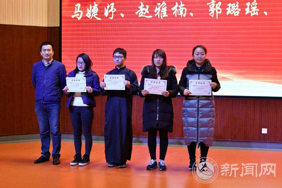 在学风表彰环节,李冱岸、夏丹梅、贺映勇、梁成瑜老师为“学院励学引领者”、“校优秀班集体”、“学院本科五星宿舍”、“校三好学生”和市级以上奖项获奖者颁奖。