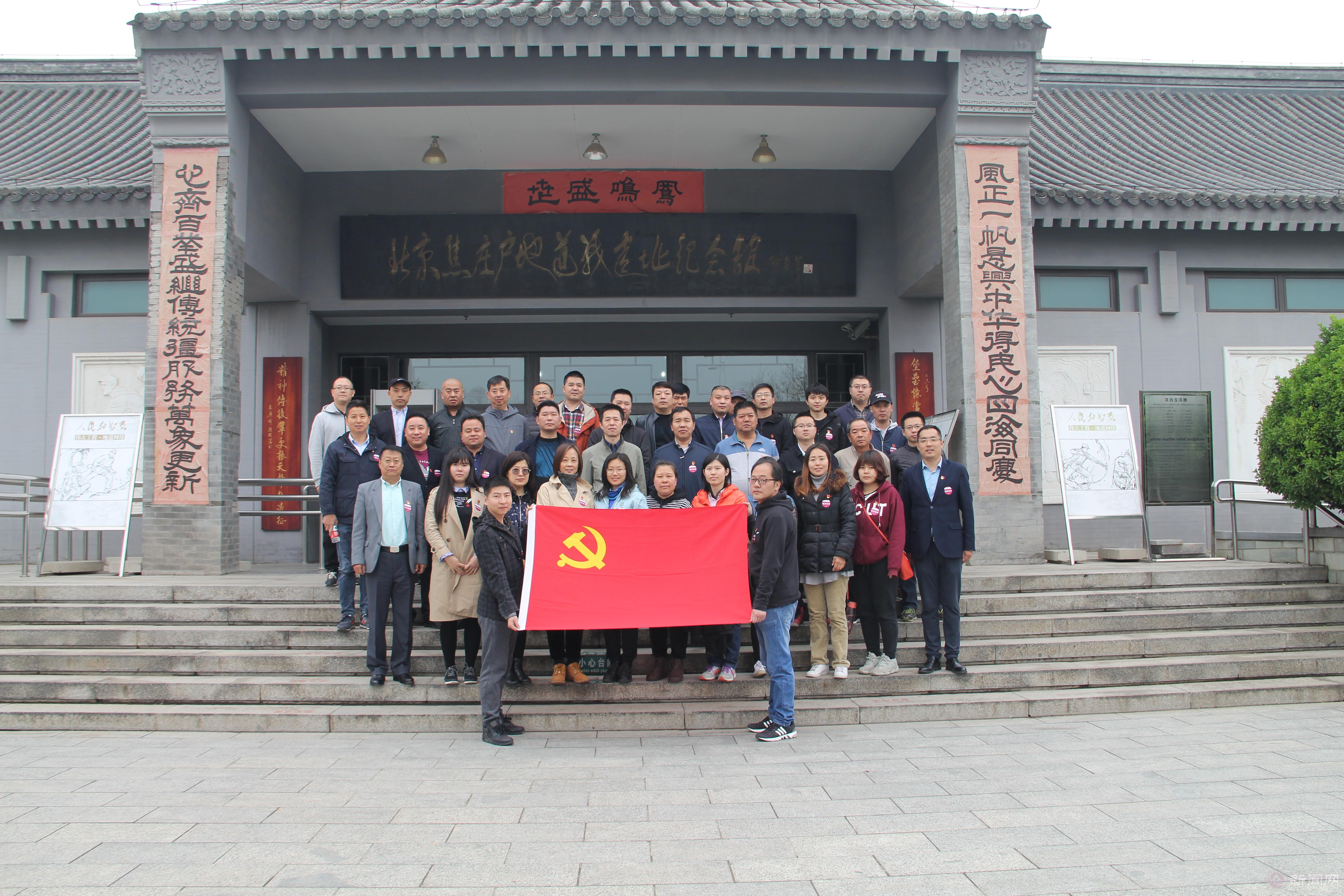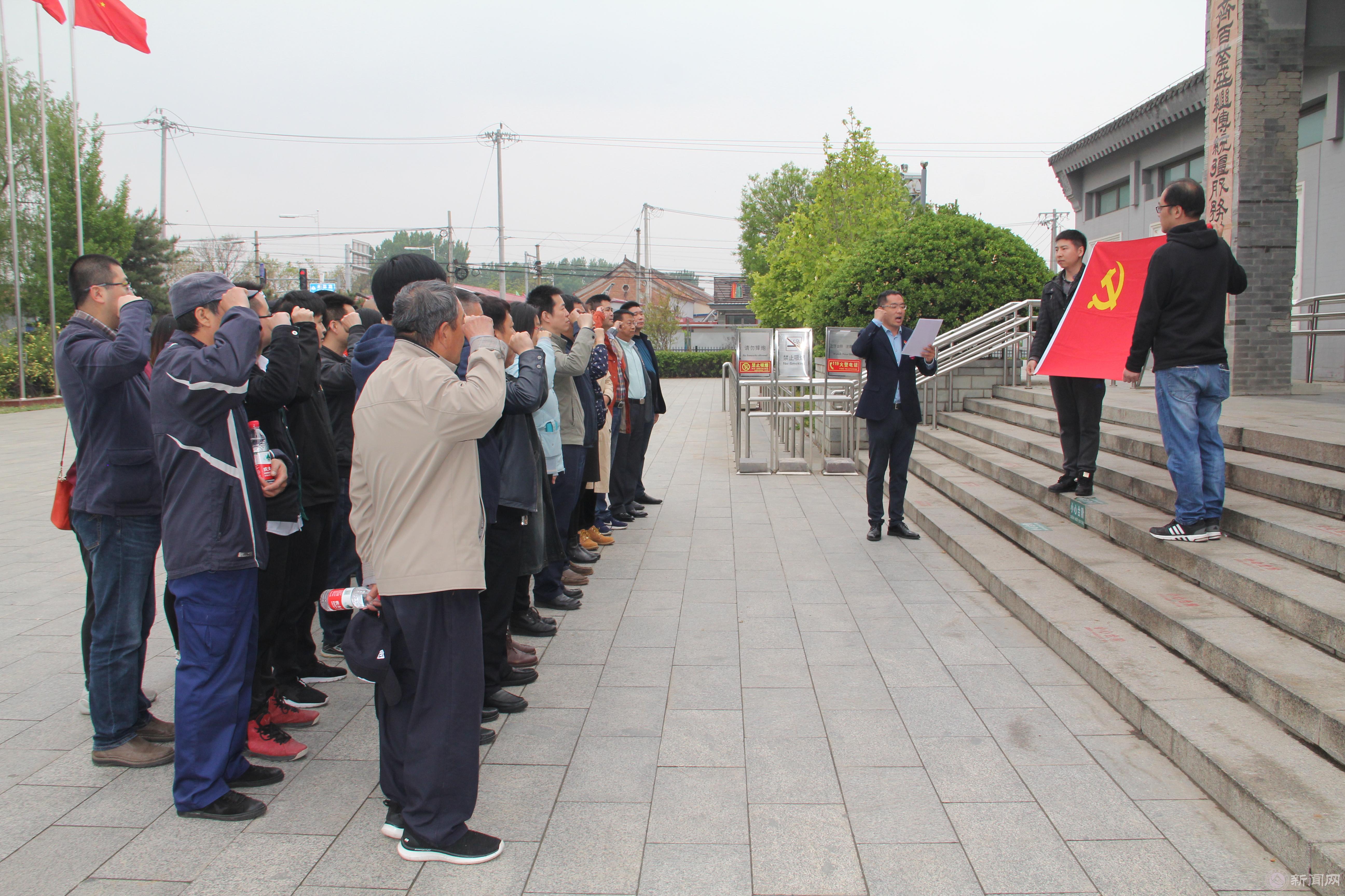 在焦庄户地道战遗址纪念馆前,组织全体党员面向党旗重温入党誓词,铭记入党的誓词,对自己进行鞭策和激励。