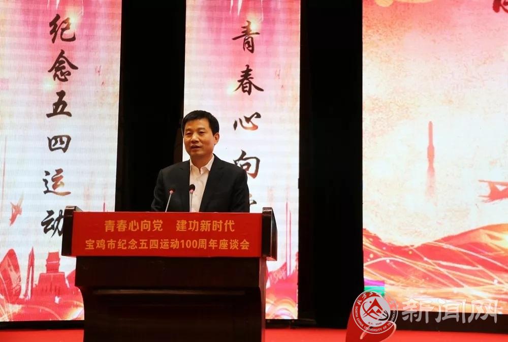 4月30号,宝鸡市举行“青春心向党 建功新时代”纪念五四运动一百周年座谈会。陕西省副省长、宝鸡市委书记徐启方出席并发表讲话。beat365文法学院中文18-2班张震同学受邀回乡参加座谈会,并作为8名发言人中唯一青年学生代表上台发言。