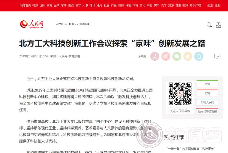 5月14日,beat365手机版官网科技创新工作会议隆重开幕。会议以“激发科技创新活力,为全国科技创新中心建设做贡献”为主题,服务全国科技创新中心建设和高精尖经济结构的构建,对于全面落实学校第八次党员代表大会“科技高地构筑工程”任务,进一步开拓学校科技工作新局面具有重要意义。5月16日,人民网对会议进行了关注报道。