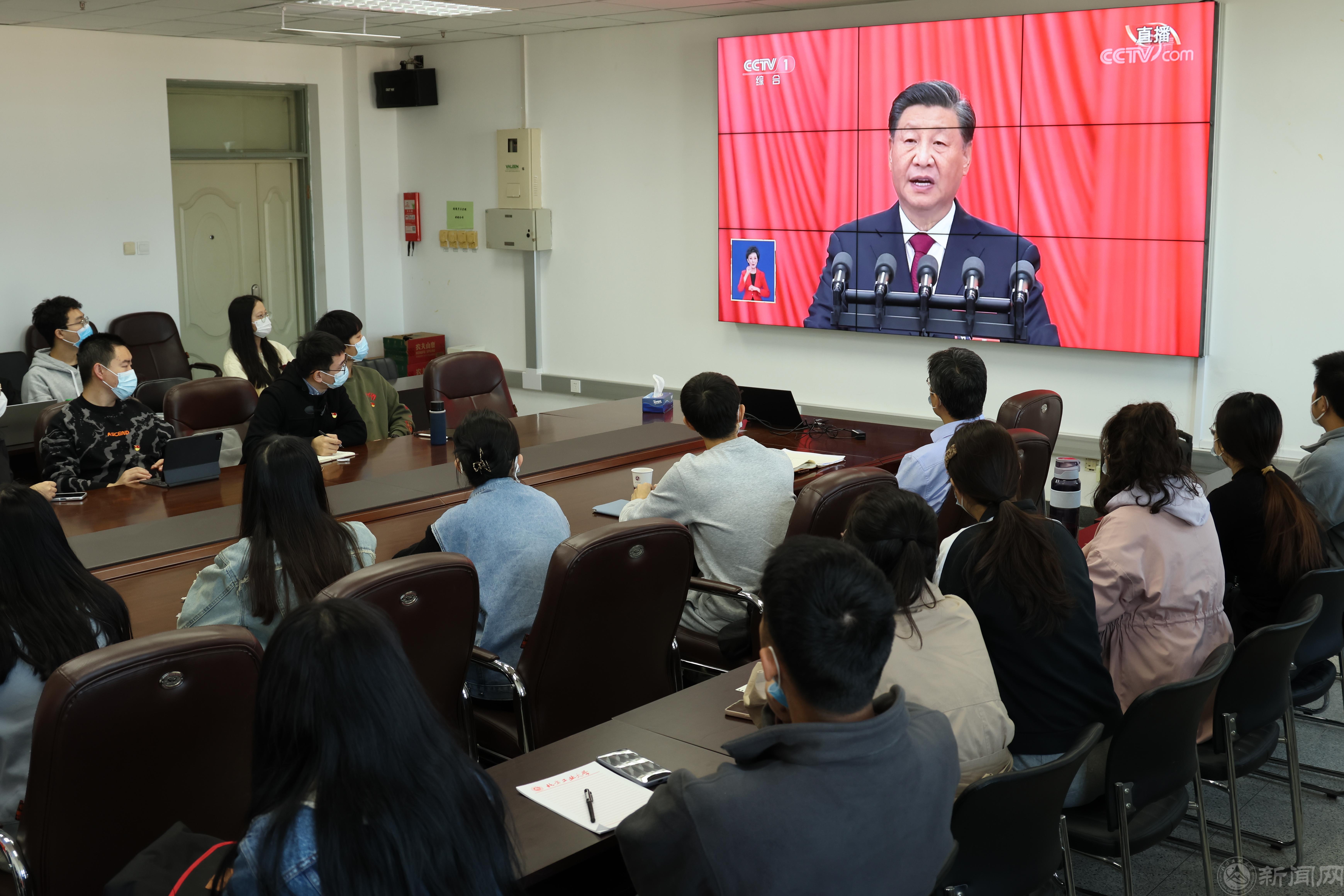 (学生自发在宿舍收看党的二十大开幕会)