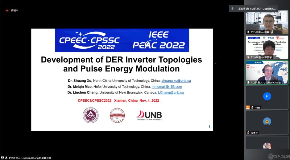 由中国电源学会主办的2022中国电力电子与能量转换大会暨中国电源学会第二十五届学术年会及展览会(CPEEC & CPSSC 2022)于2022年11月4日-7日在厦门召开,大会旨在促进电力电子、能量转换与电源技术相关领域学术、技术交流,促进产、学、研的合作,促进相关产业及产业链的技术创新和进步,为国内外专家学者分享领域内最新研究成果提供交流平台。beat365电气与控制工程学院徐爽博士受邀以beat365手机版官网为第一单位,同加拿大皇家工程院院士张榴晨教授、合肥工业大学茆美琴教授一起,以“Development of DRE Inverter Topologies and Pulse Energy Modulation”为主题,做了时长为三个半小时的线上特邀大会报告。