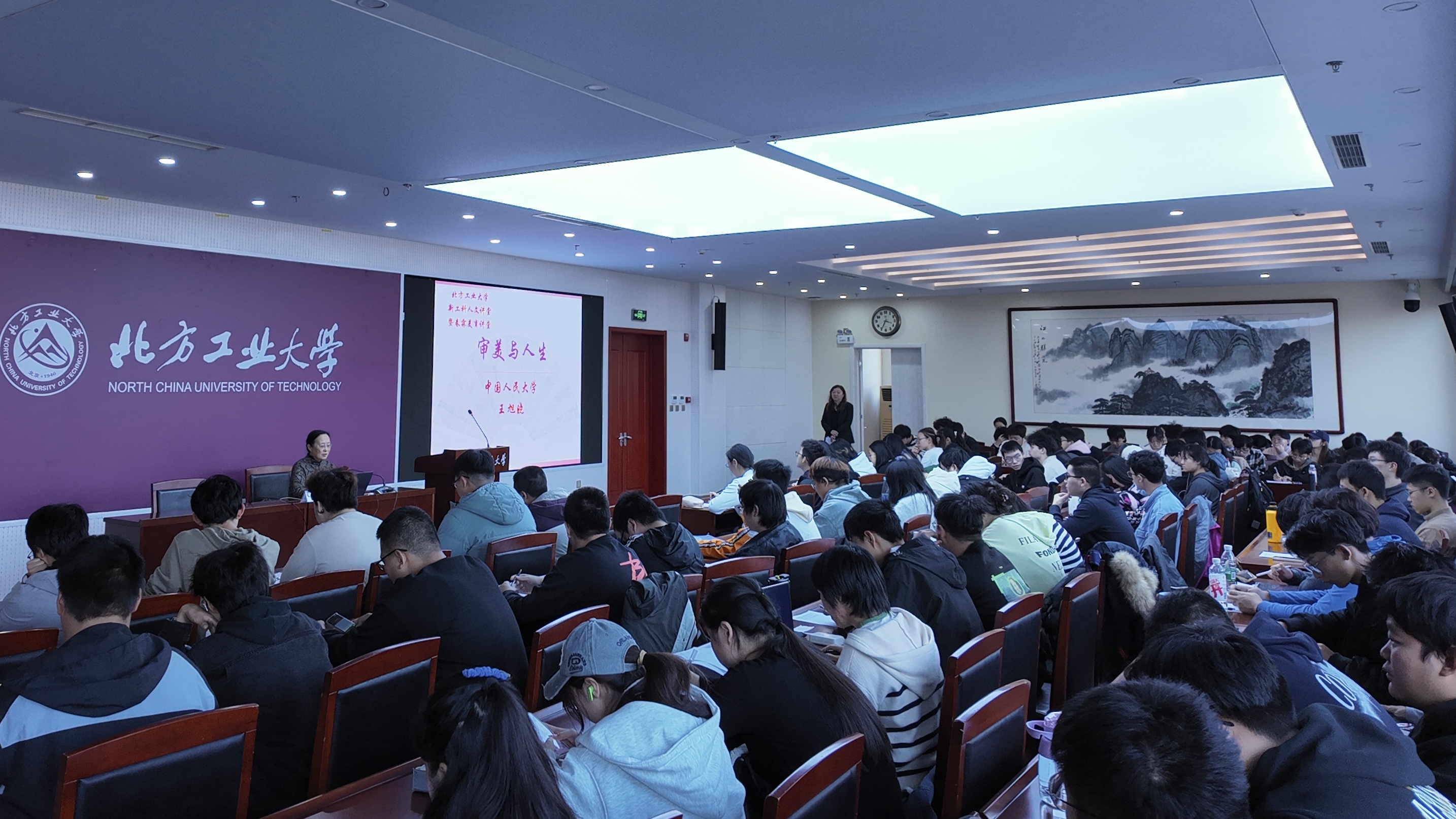 11月14日下午,“新工科人文讲堂暨春霖美育讲堂”之“审美与人生”主题讲座在浩学楼报告厅举办,本讲特邀中国人民大学教授、博士生导师王旭晓主讲。机械与材料工程学院及其他学院的140余名师生参加了本次讲座。机械与材料工程学院副书记石卉主持了本次讲座。讲座中,王旭晓教授以审美与人生的关系为主线生动阐述了审美活动的含义、审美与人生的关系。她指出,在审美活动中审美主体和审美客体之间的关系是一种价值关系,审美活动...